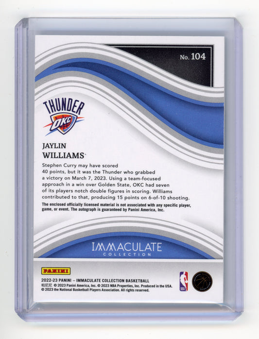 2022 Panini Immaculate Jaylin Williams Rookie Patch Autograph FOTL 2/8 RC #104