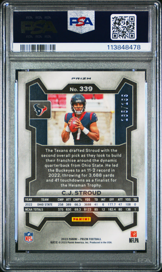 2023 Panini Prizm CJ Stroud Blue Wave 168/199 RC #339 PSA 9
