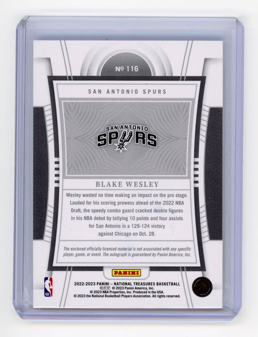 2022 Panini National Treasures Blake Wesley Rookie Patch Autograph RC 78/99 #116