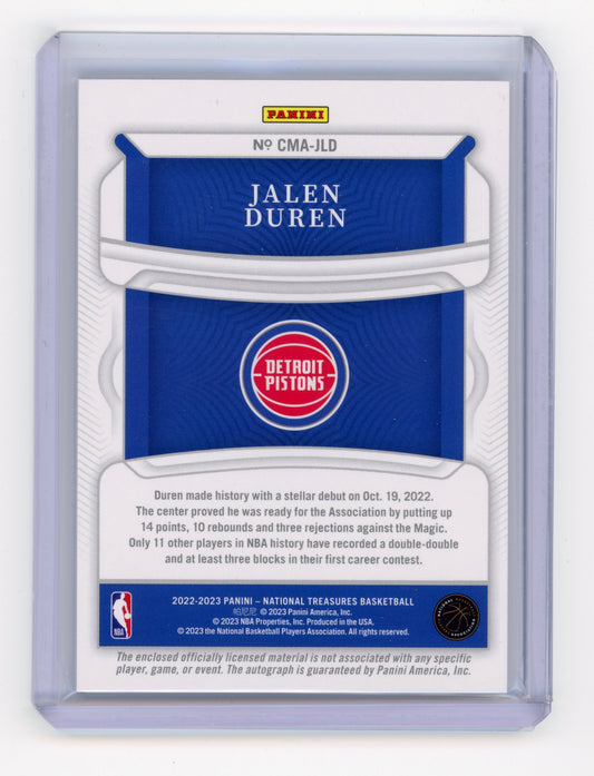 2022 Panini National Treasures Jalen Duren Colossal Material Auto Prime 02/25 RC