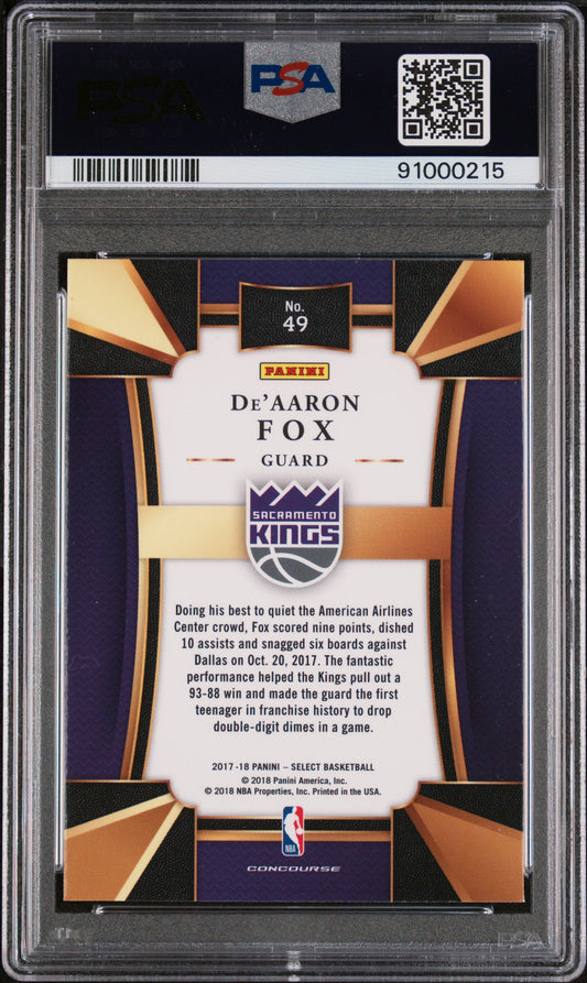 2017 Panini Select De'aaron Fox RC #49 PSA 10