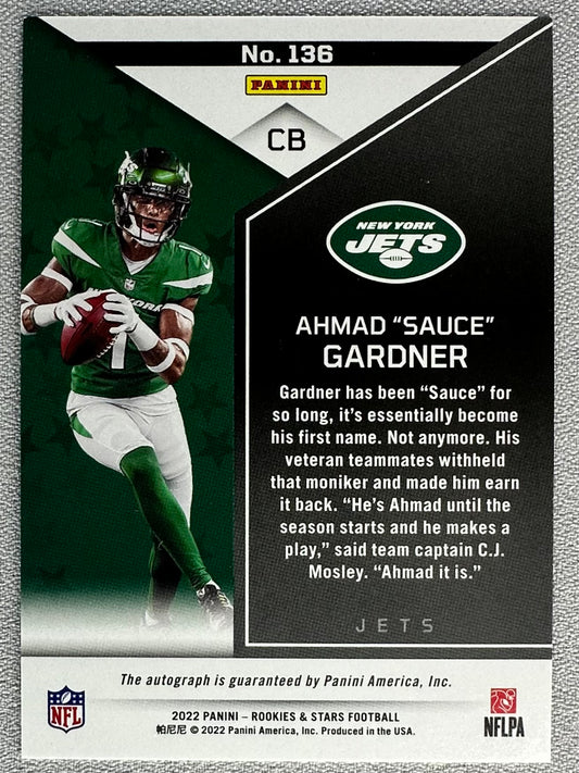 2022 Panini Rookies & Stars Ahmad "Sauce" Gardner Rookie Auto /299 #136 RC