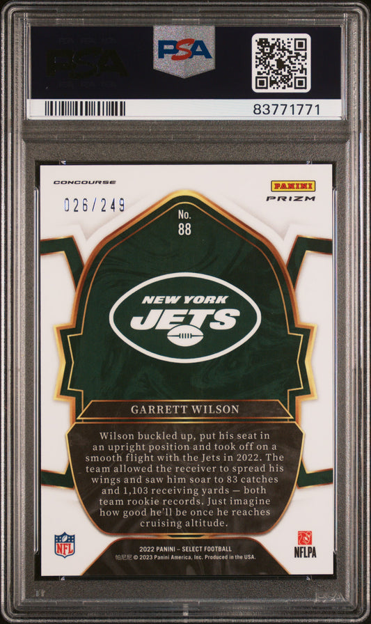 2022 Panini Select Garrett Wilson Tri Color Prizm /249 RC #88 PSA 10