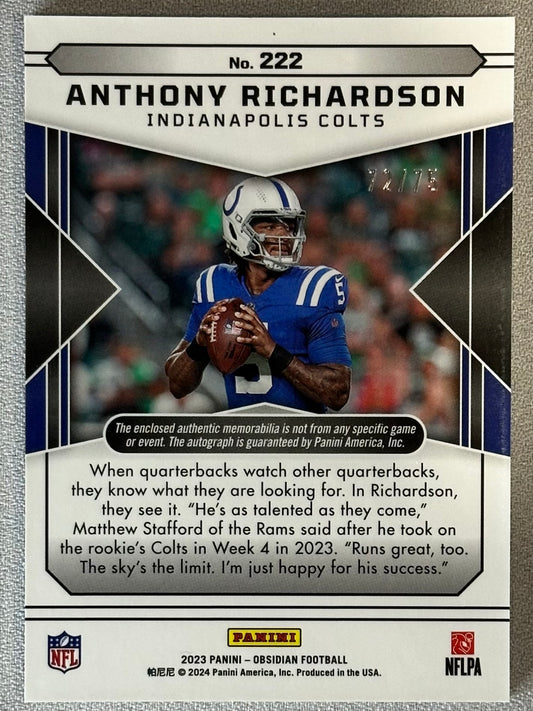 2023 Panini Obsidian Anthony Richardson RPA Purple /75 #222 RC