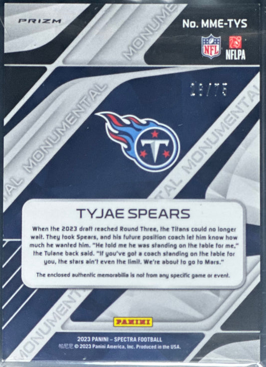 Tyjae Spears 2023 Panini Spectra Monumental Mem Celestial /75 #MME-TYS RC