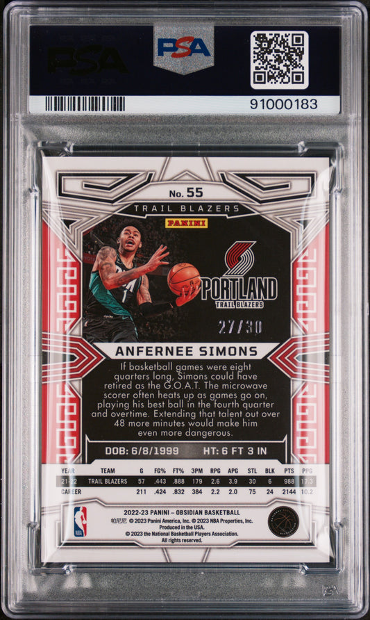 2022 Panini Obsidian Anfernee Simons Electric Etch Blue /30 #55 PSA 10