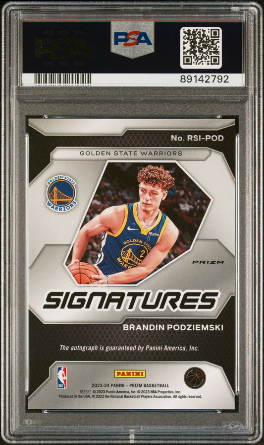 Brandin Podziemski 2023 Panini Prizm Rookie Signature Silver #RSIPOD PSA 9 RC
