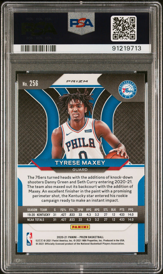 2020 Panini Prizm Tyrese Maxey Red White Blue Prizm #256 PSA 9