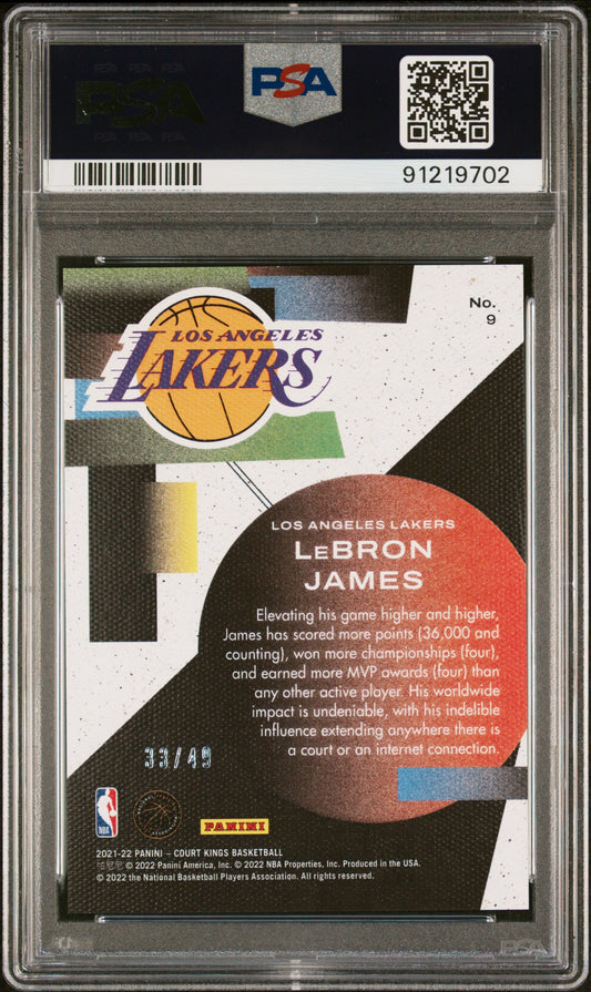 2021 Panini Court Kings LeBron James Maestros Violet /49 #9 PSA 9