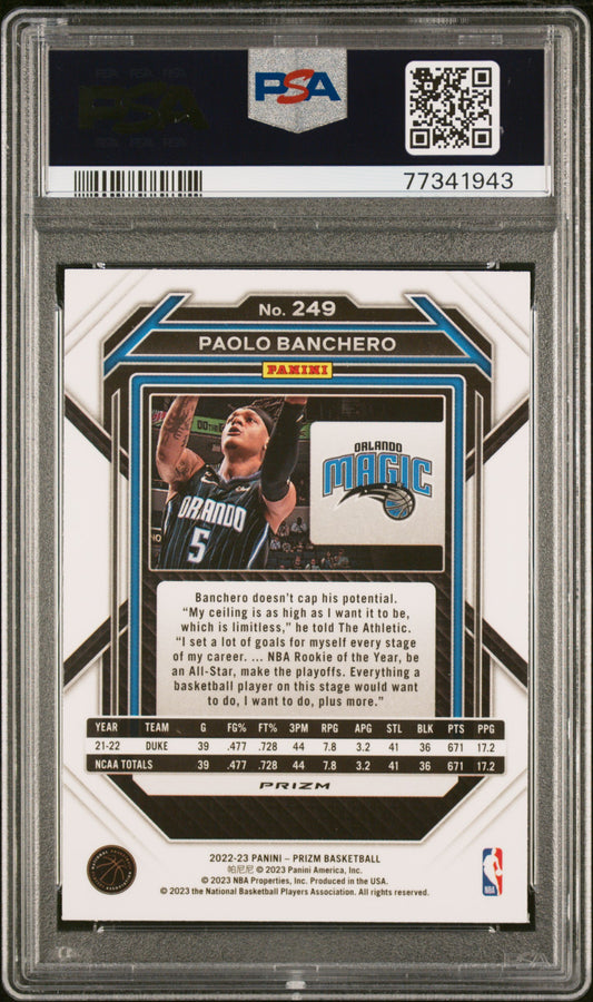 2022 Panini Prizm Paolo Banchero Silver #249 RC PSA 9