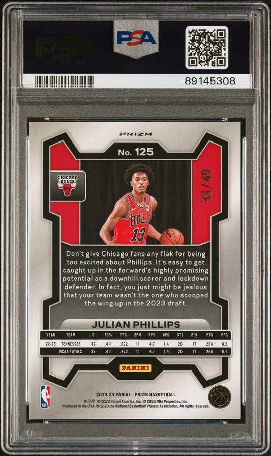2023 Panini Prizm Julian Phillips Orange Prizm /49 #125 RC PSA 10