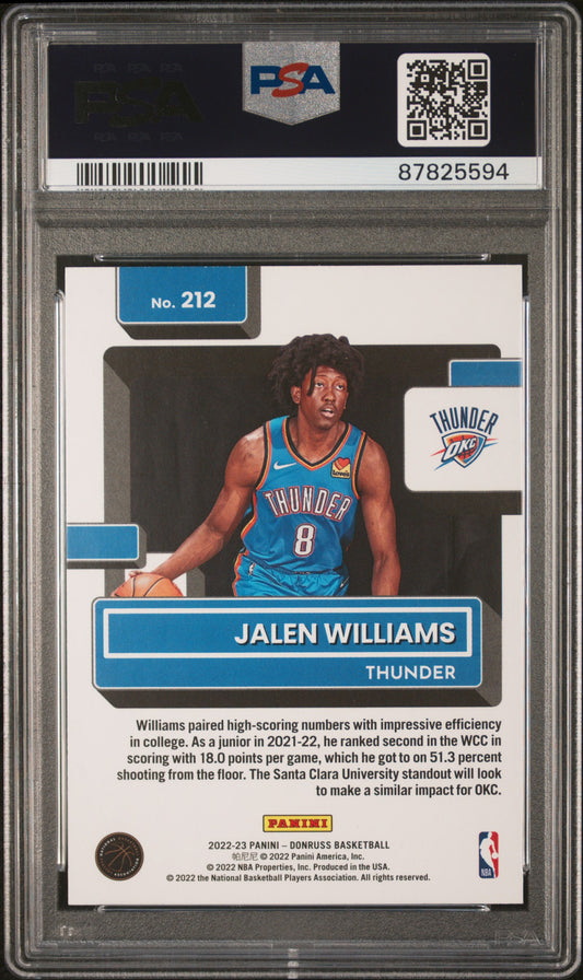 2022 Panini Donruss Jalen Williams Green Holo Laser #212 PSA 10