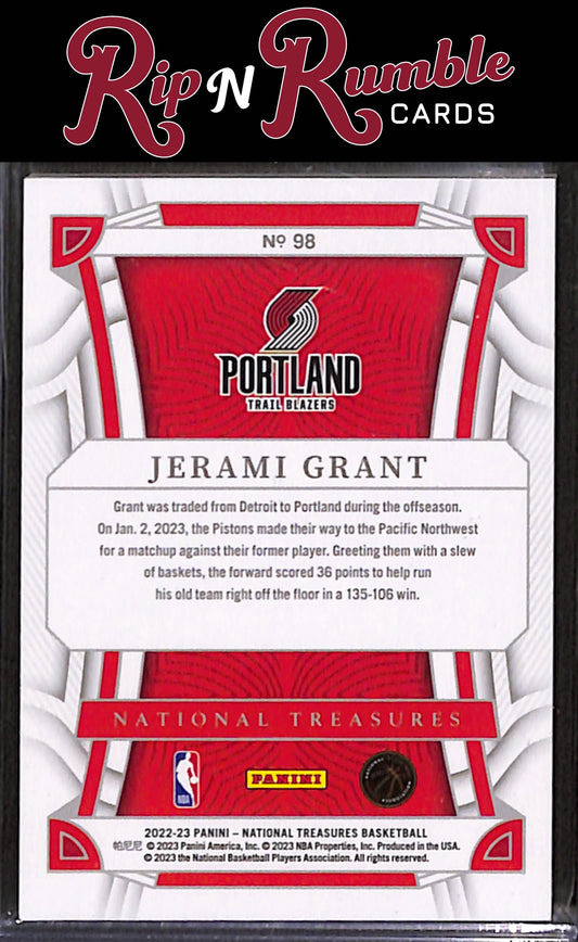 2022-23 National Treasures Jerami Grant Red /75 #98
