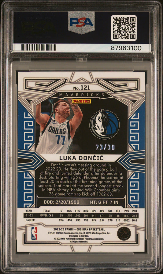 2022 Panini Obsidian Luka Doncic Electric Etch Blue /30 #121 PSA 9