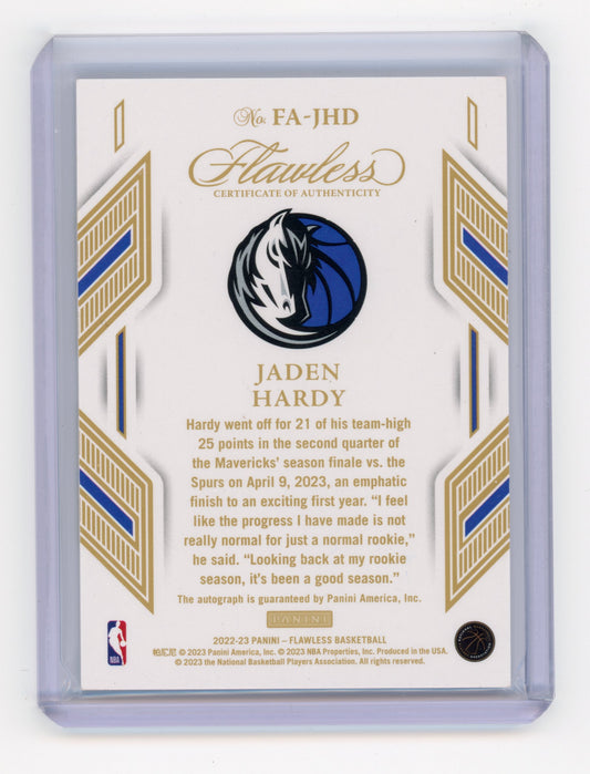 2022 Panini Flawless Jaden Hardy Autographs Gold /10 #FA-JHD RC