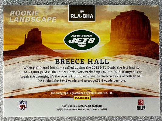 2022 Panini Impeccable Breece Hall Rookie Landscape Silver /49 #RLA-BHA RC