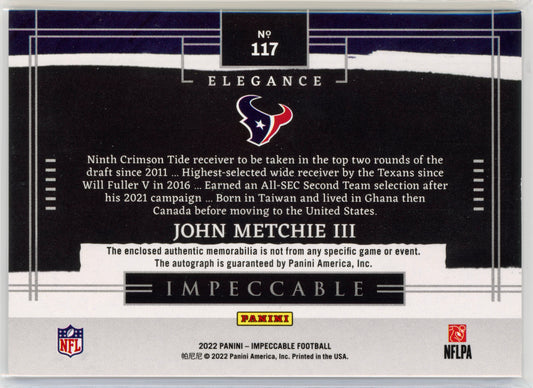 2022 Panini Impeccable John Metchie III Elegance RPA /25 RC #117