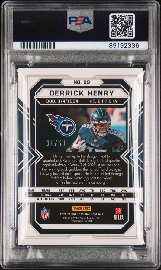 2022 Panini Obsidian Derrick Henry Electric Etch Green /50 #99 PSA 9