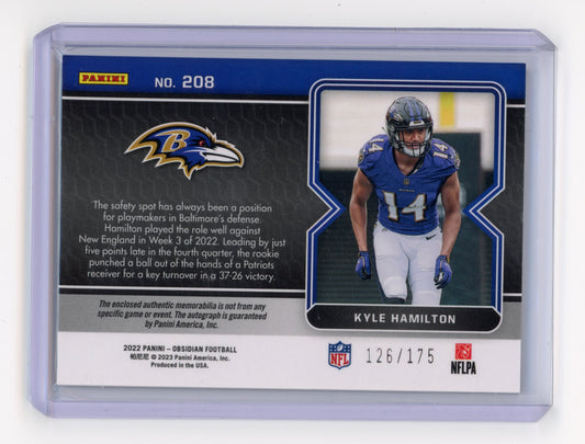2022 Panini Obsidian Kyle Hamilton Rookie Jersey Autograph RC 126/175 #208