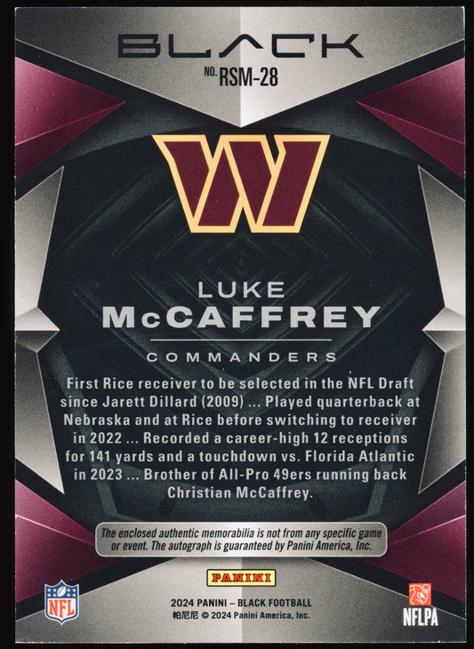 2024 Panini Black Luke McCaffrey Rookie Signature Material Royal /75 #RSM-28 RC