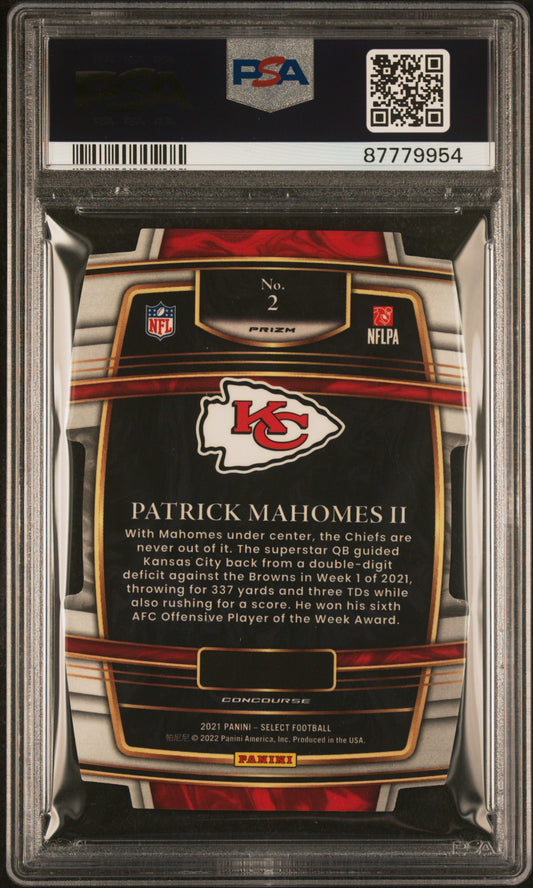 2021 Panini Select Patrick Mahomes II Die-Cut Red Blue Prizm #2 PSA 8