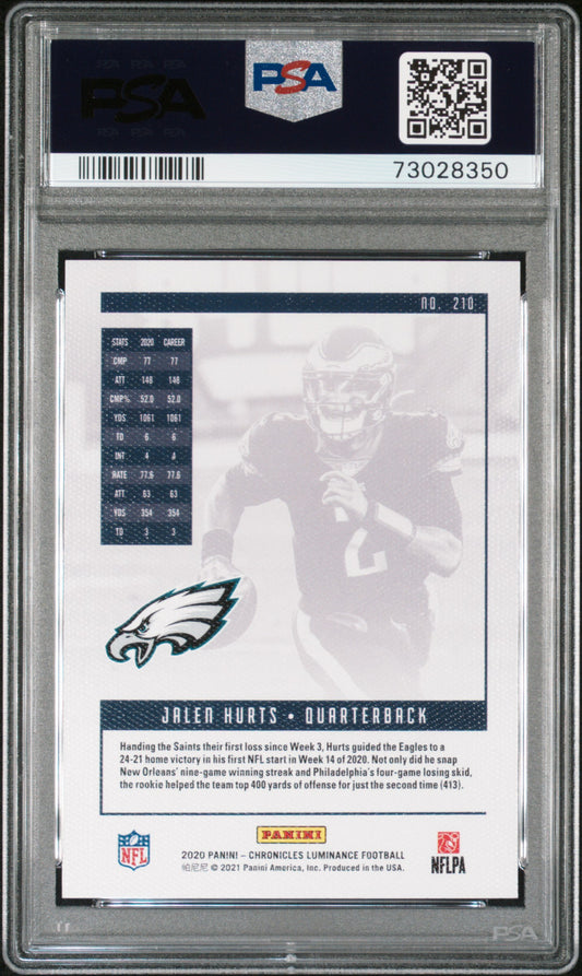 2020 Panini Chronicles Jalen Hurts Luminance RC #210 PSA 9