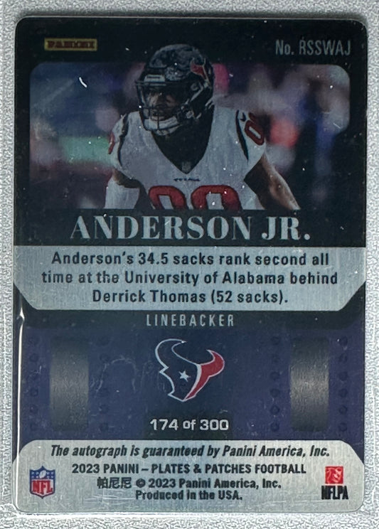 Will Anderson Jr. 2023 Panini Plates & Patches Rookie Steel Signatures /300 RC