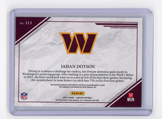 2022 Panini Limited Jahan Dotson Rookie Patch Autograph 175/199 RC #113