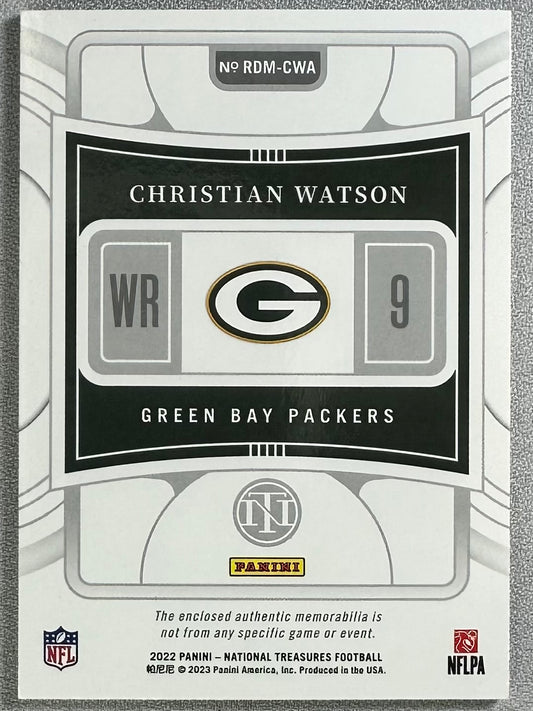 2022 Panini National Treasures Christian Watson Rookie Dual Materials /99 RC