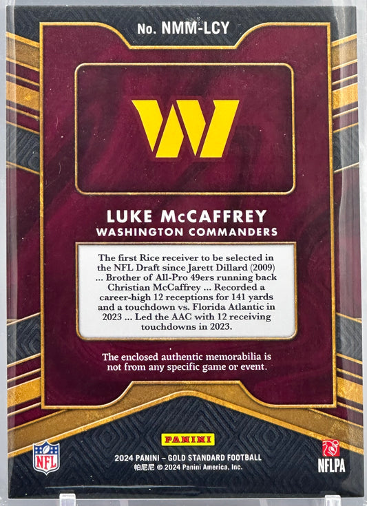 Luke McCaffrey 2024 Panini Gold Standard Newly Minted Materials /499 RC