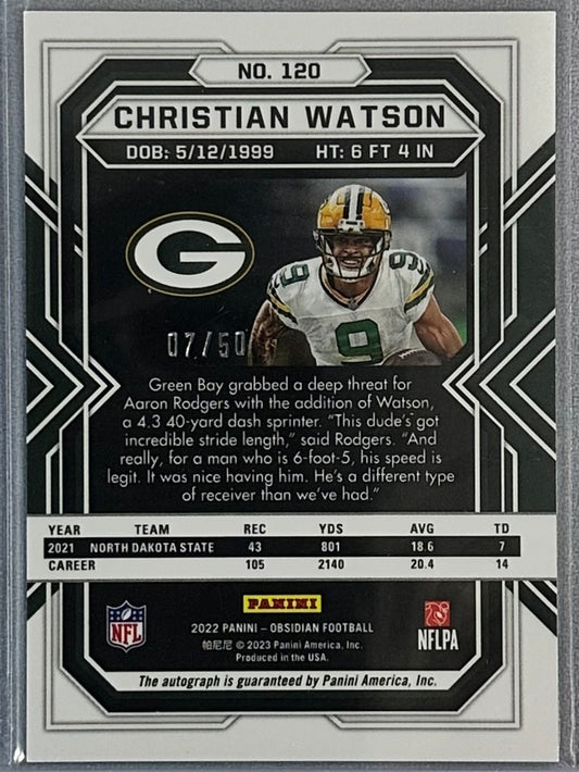 2022 Panini Obsidian Christian Watson Rookie Auto Green /50 #120