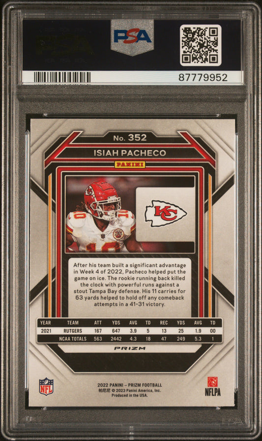 2022 Panini Prizm Isiah Pacheco Orange Ice #352 RC PSA 10