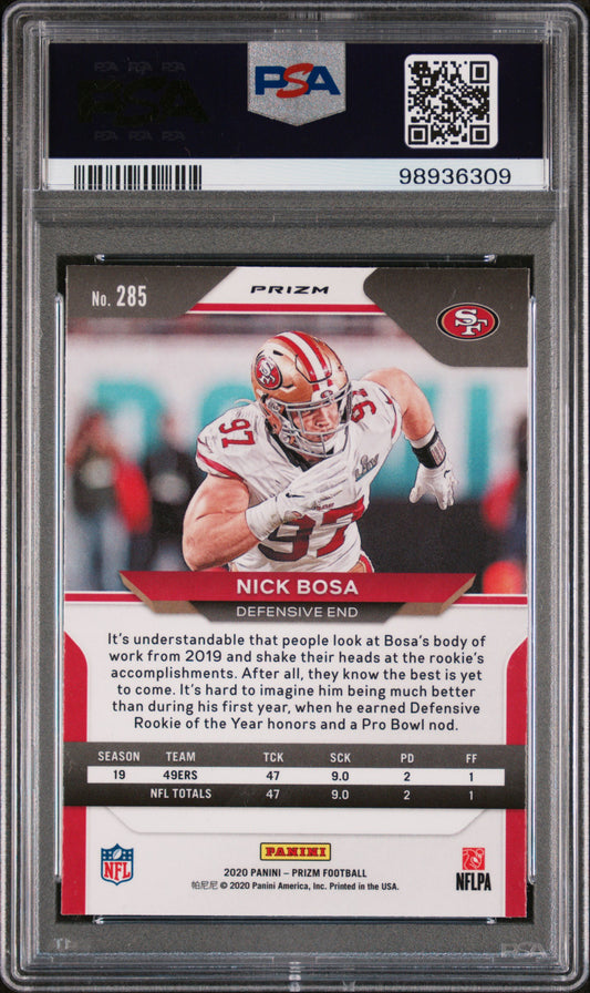 2020 Panini Prizm Nick Bosa White Sparkle #285 PSA 9