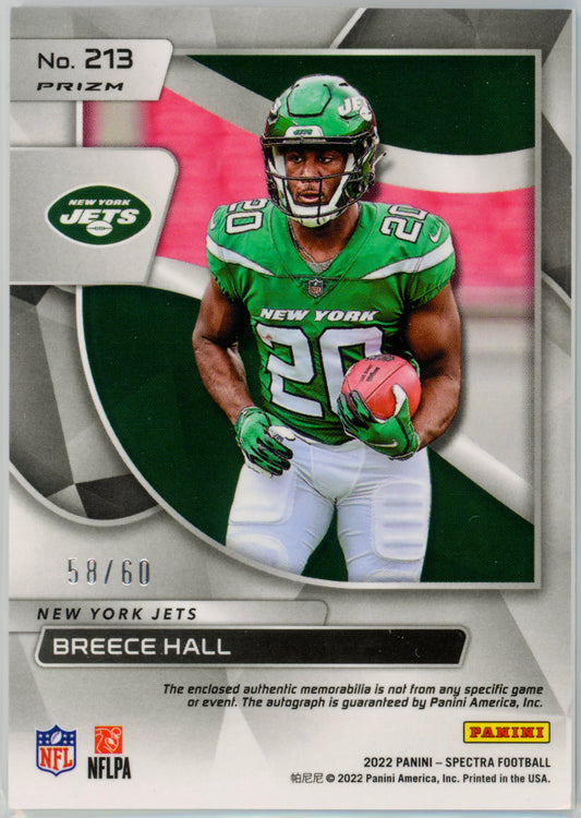 2022 Panini Spectra Breece Hall RPA Blue Neon /60 #213
