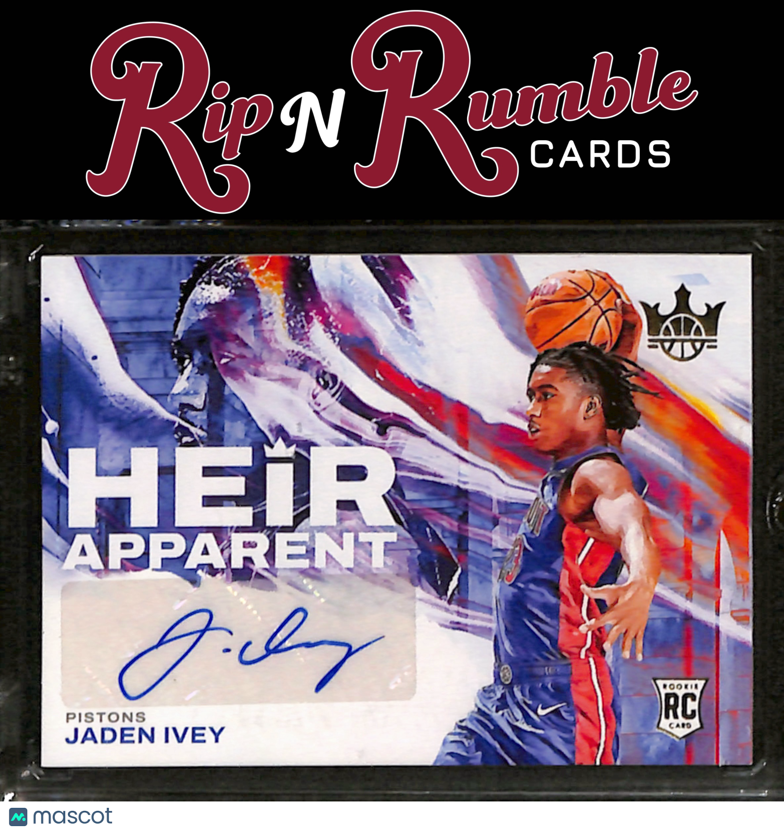 You are purchasing a 2022-23 Court Kings Jaden Ivey Heir Apparent /199 #HA-JIP from Rip N Rumble Cards LLC. You will receive the exact item in the photographs. Thank you for your business! All sales are final, we do not accept returns. Standard shipping rates are: $5.00 USPS Ground Advantage for ALL cards. If you purchase multiple items and prepay, any additional shipping costs will be refunded after the $5 is met. We cannot invoice International orders! Any International customer must purchase their cards in full WITH shipping costs, and the difference in shipping will be refunded. Any orders of 10+ raw cards or 5+ slabs may be shipped in multiple packages. We are not set up for huge orders! Handling time is 3 business days, but often much sooner. We do not ship on MOST weekends! Please note if our shop is in vacation mode! If this is the case, all orders will be shipped on or before the return date. Thank you for considering Rip N Rumble Cards, we do our best to have the greatest shipping and customer service possible to make every order easy and hassle free for our customers. We very much appreciate your business! Listed With Mascot.