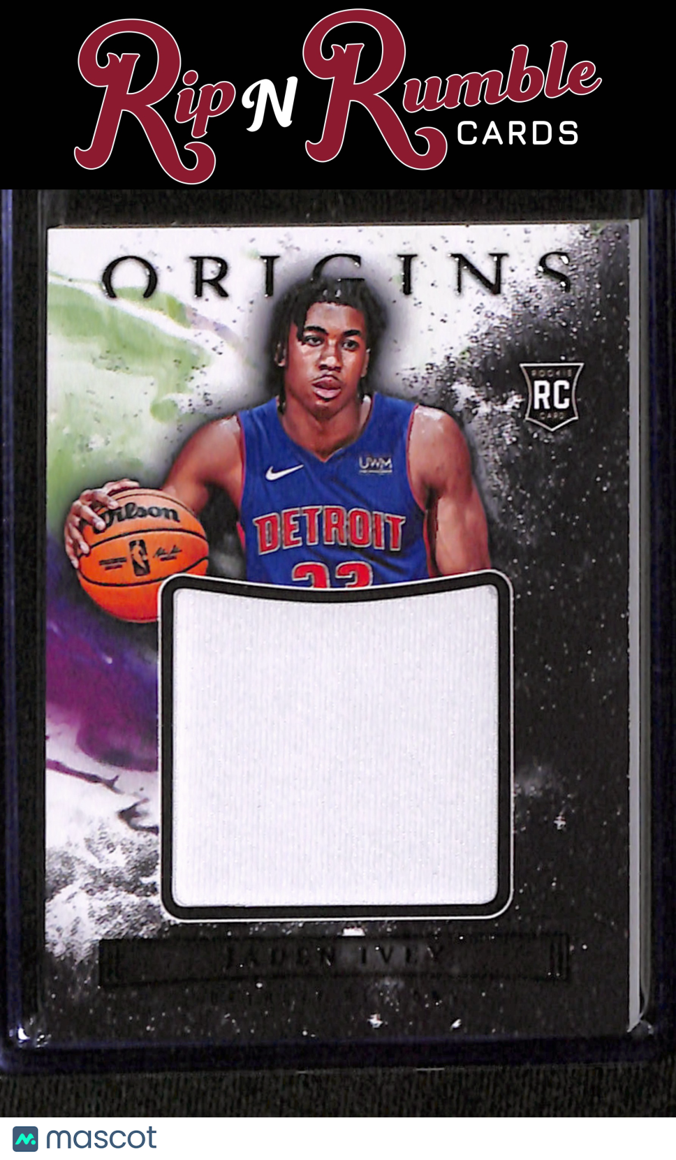 You are purchasing a 2022-23 Origins Jaden Ivey Rookie Jumbo Jerseys #JJ-JIP from Rip N Rumble Cards LLC. You will receive the exact item in the photographs. Thank you for your business! All sales are final, we do not accept returns. Standard shipping rates are: $5.00 USPS Ground Advantage for ALL cards. If you purchase multiple items and prepay, any additional shipping costs will be refunded after the $5 is met. We cannot invoice International orders! Any International customer must purchase their cards in full WITH shipping costs, and the difference in shipping will be refunded. Any orders of 10+ raw cards or 5+ slabs may be shipped in multiple packages. We are not set up for huge orders! Handling time is 3 business days, but often much sooner. We do not ship on MOST weekends! Please note if our shop is in vacation mode! If this is the case, all orders will be shipped on or before the return date. Thank you for considering Rip N Rumble Cards, we do our best to have the greatest shipping and customer service possible to make every order easy and hassle free for our customers. We very much appreciate your business! Listed With Mascot.