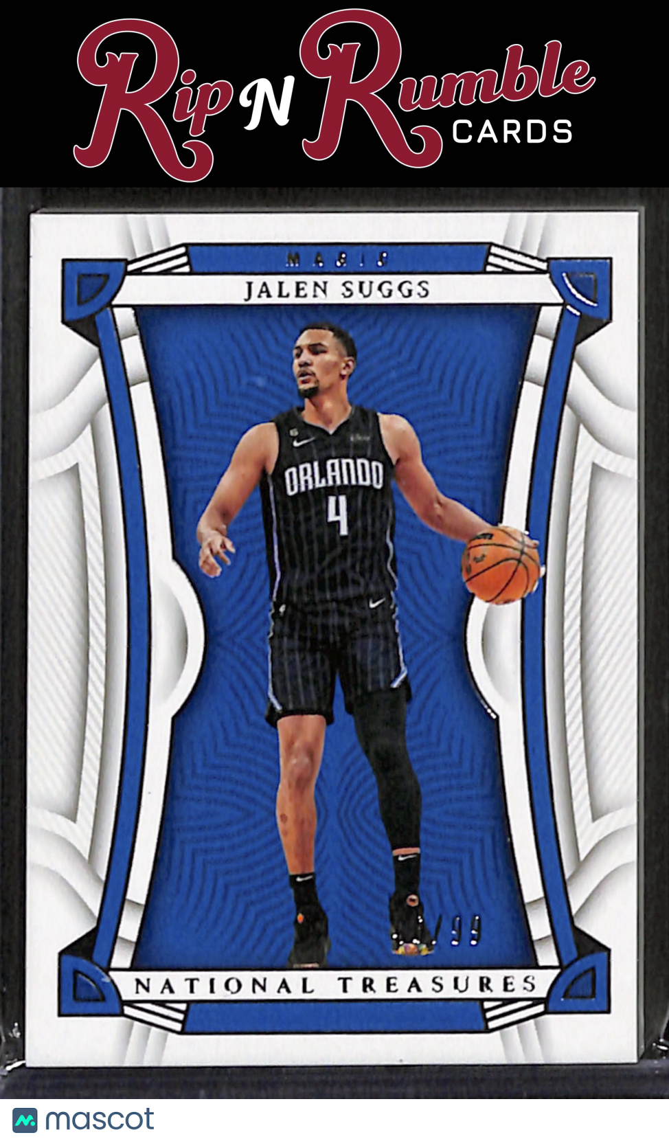 You are purchasing a 2022-23 Panini National Treasures Jalen Suggs /99 #64 from Rip N Rumble Cards LLC. You will receive the exact item in the photographs. Thank you for your business! All sales are final, we do not accept returns. Standard shipping rates are: $5.00 USPS Ground Advantage for ALL cards. If you purchase multiple items and prepay, any additional shipping costs will be refunded after the $5 is met. We cannot invoice International orders! Any International customer must purchase their cards in full WITH shipping costs, and the difference in shipping will be refunded. Any orders of 10+ raw cards or 5+ slabs may be shipped in multiple packages. We are not set up for huge orders! Handling time is 3 business days, but often much sooner. We do not ship on MOST weekends! Please note if our shop is in vacation mode! If this is the case, all orders will be shipped on or before the return date. Thank you for considering Rip N Rumble Cards, we do our best to have the greatest shipping and customer service possible to make every order easy and hassle free for our customers. We very much appreciate your business! Listed With Mascot.