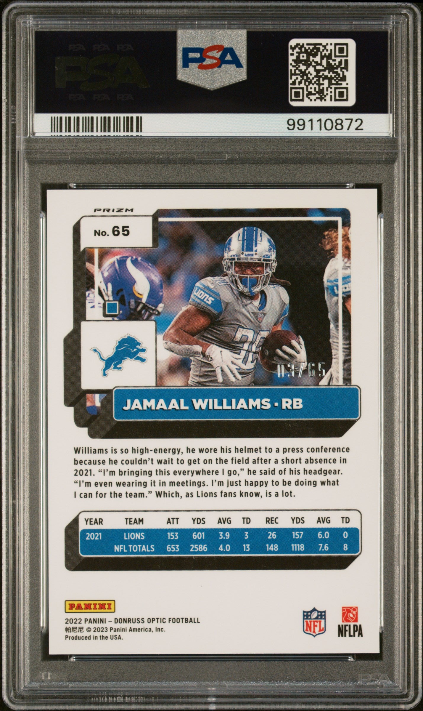 2022 Panini Donruss Optic Jamaal Williams Electricity /65 #65 PSA 9