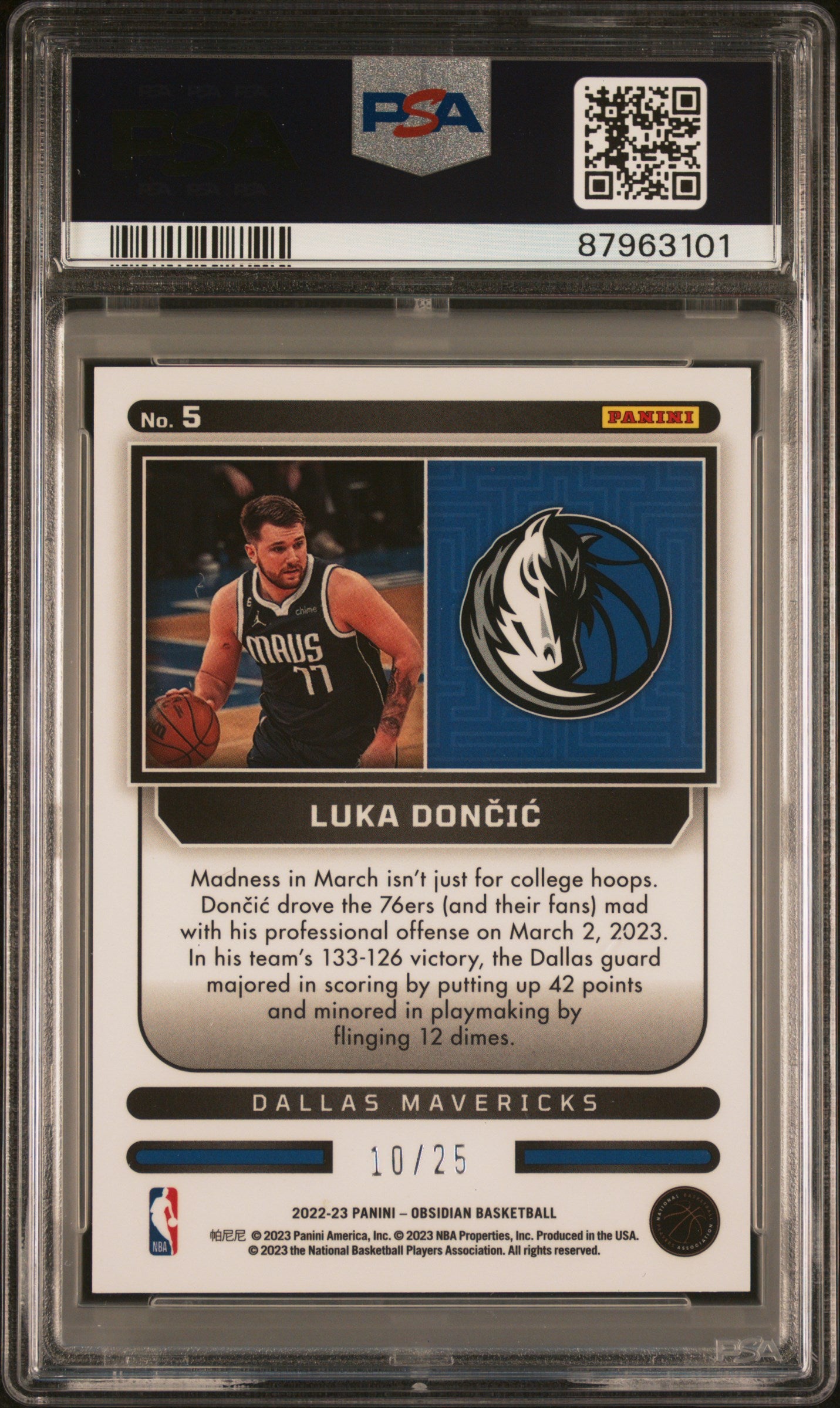 2022 Panini Obsidian Luka Doncic Supernova Green /25 #5 PSA 9