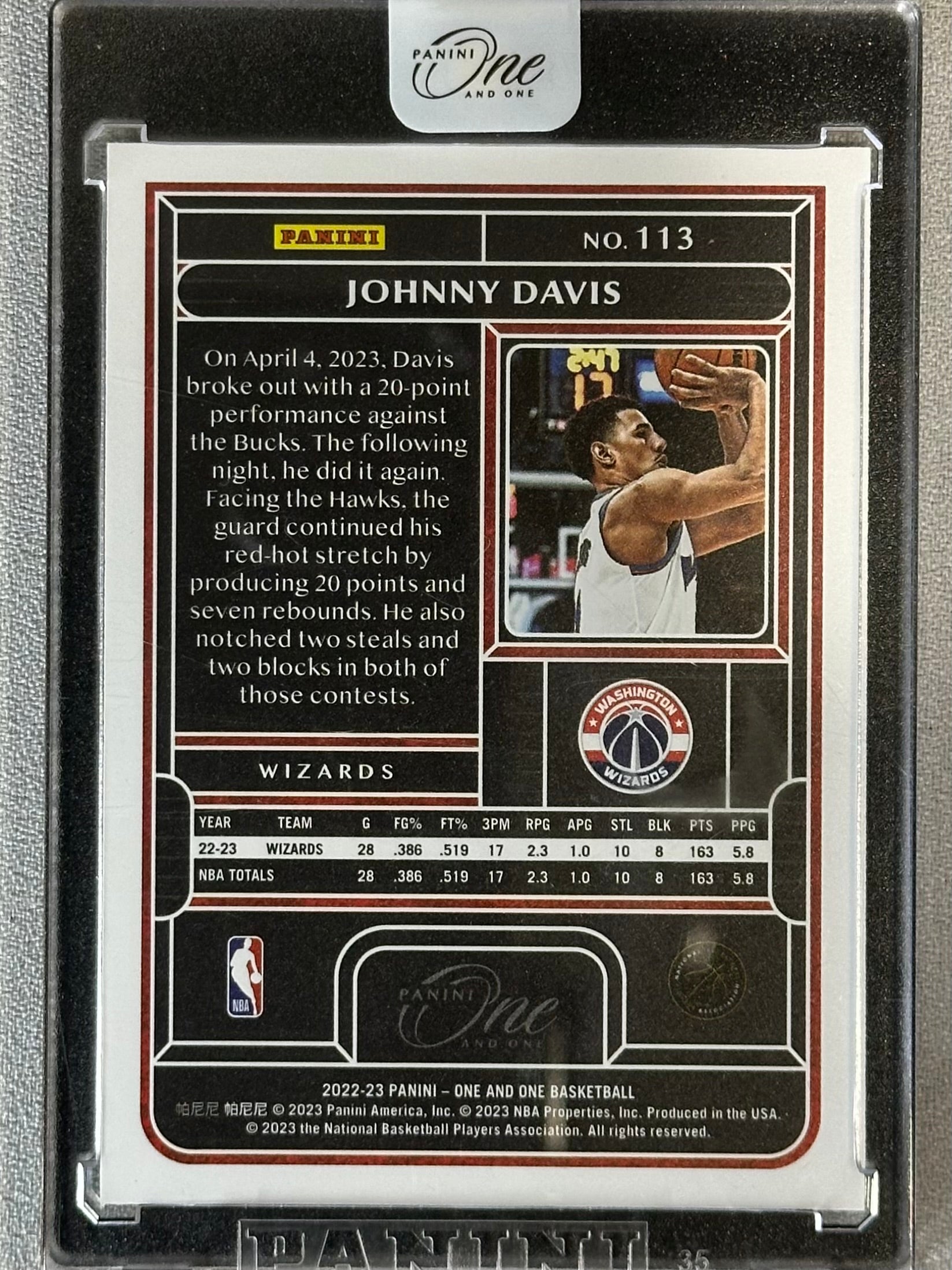 2022 Panini One and One Johnny Davis Green /5 #113 RC