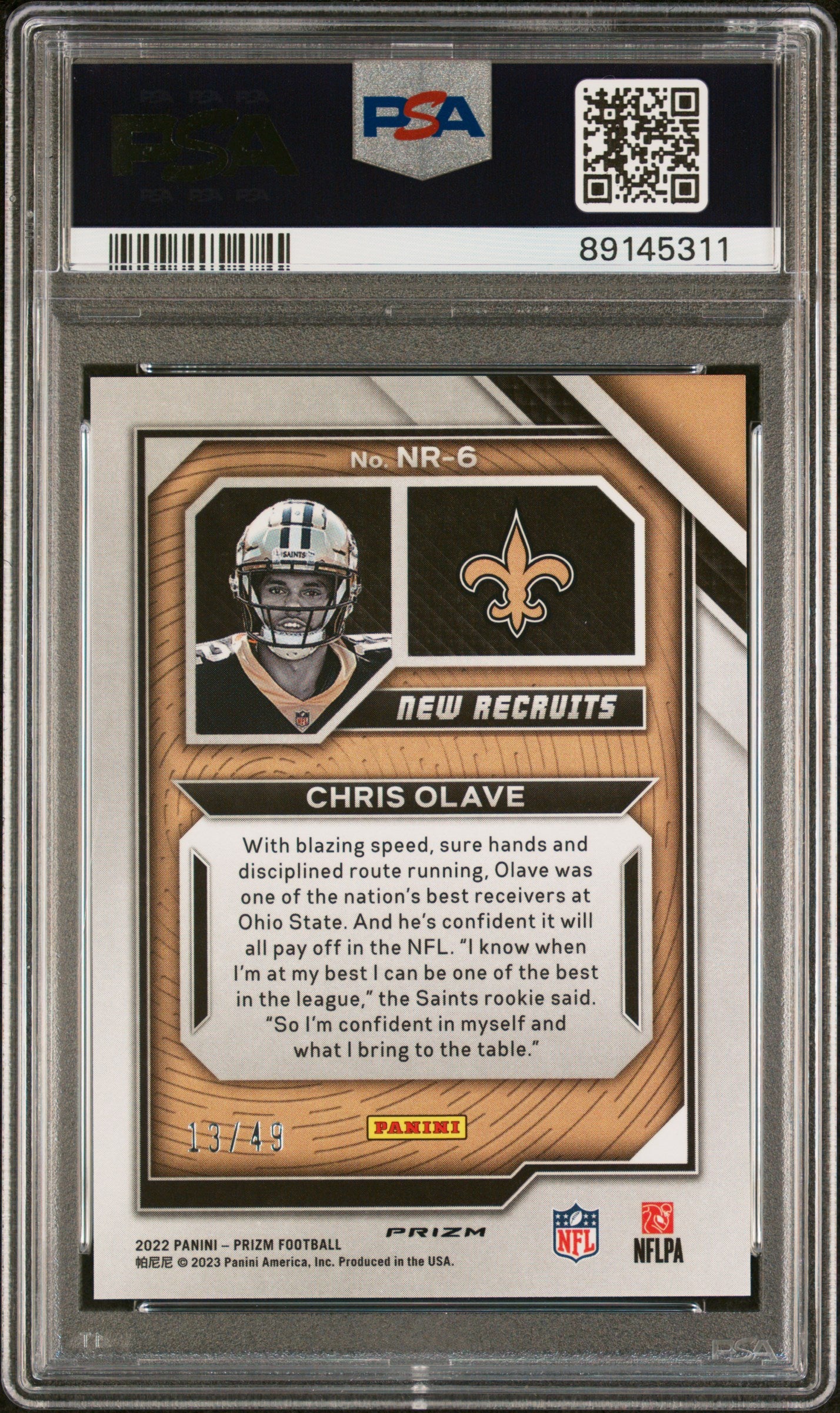 2022 Panini Prizm Chris Olave New Recruits Purple Power /49 #NR6 PSA 9