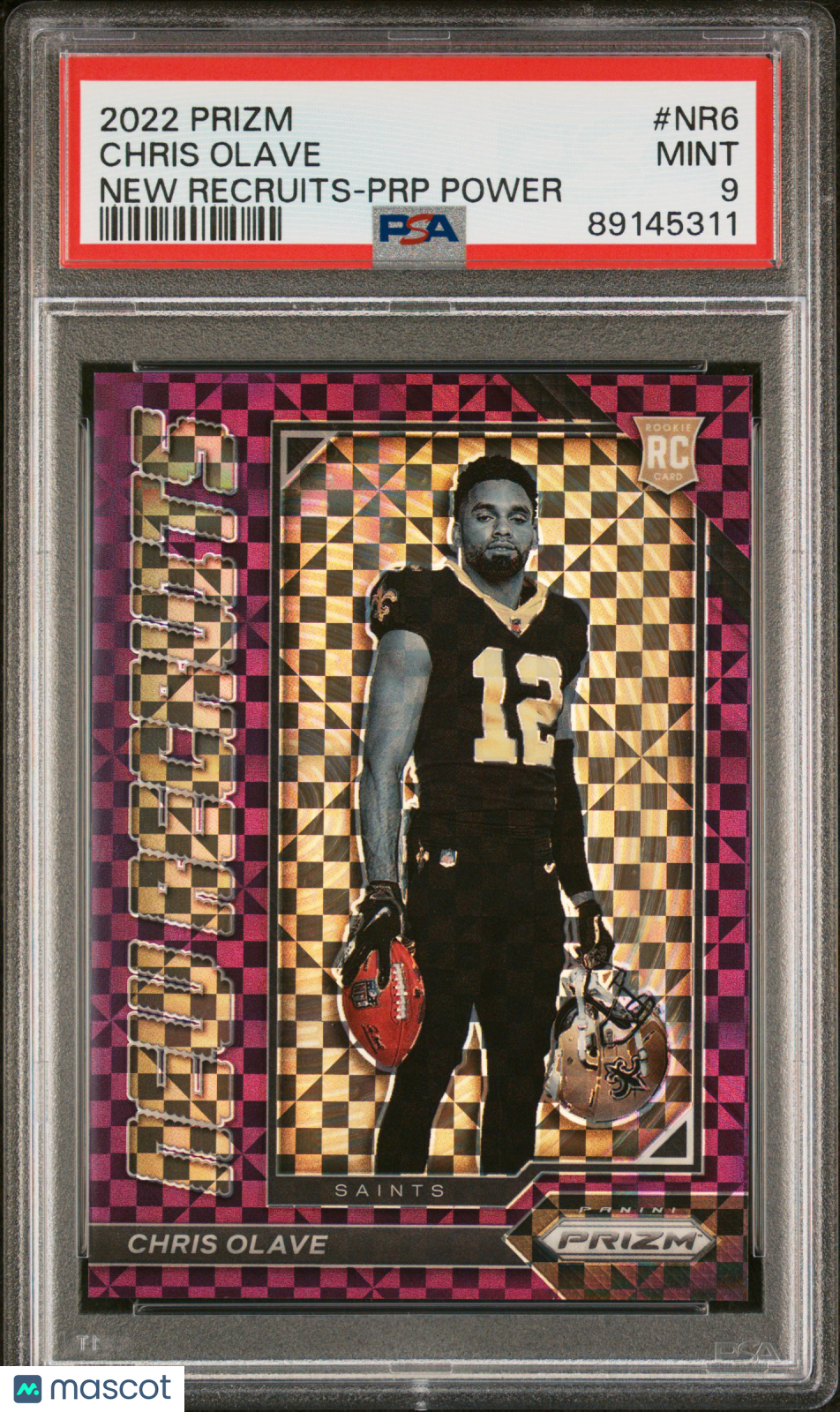 You are purchasing a 2022 Panini Prizm Chris Olave New Recruits Purple Power /49 #NR6 PSA 9 from Rip N Rumble Cards LLC. You will receive the exact item in the photographs. Thank you for your business! All sales are final, we do not accept returns. Standard shipping rates are: $5.00 USPS Ground Advantage for ALL cards. If you purchase multiple items and prepay, any additional shipping costs will be refunded after the $5 is met. We cannot invoice International orders! Any International customer must purchase their cards in full WITH shipping costs, and the difference in shipping will be refunded. Any orders of 10+ raw cards or 5+ slabs may be shipped in multiple packages. We are not set up for huge orders! Handling time is 3 business days, but often much sooner. We do not ship on MOST weekends! Please note if our shop is in vacation mode! If this is the case, all orders will be shipped on or before the return date. Thank you for considering Rip N Rumble Cards, we do our best to have the greatest shipping and customer service possible to make every order easy and hassle free for our customers. We very much appreciate your business! Listed With Mascot.