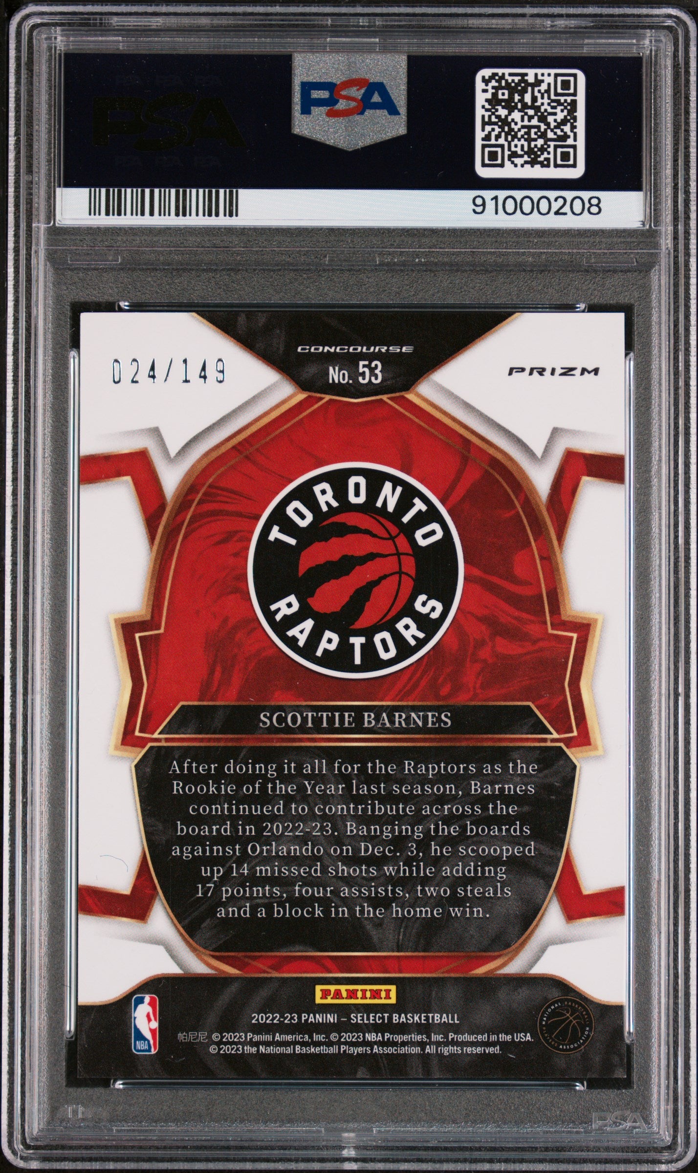 2022 Panini Select Scottie Barnes White /149 #53 PSA 9