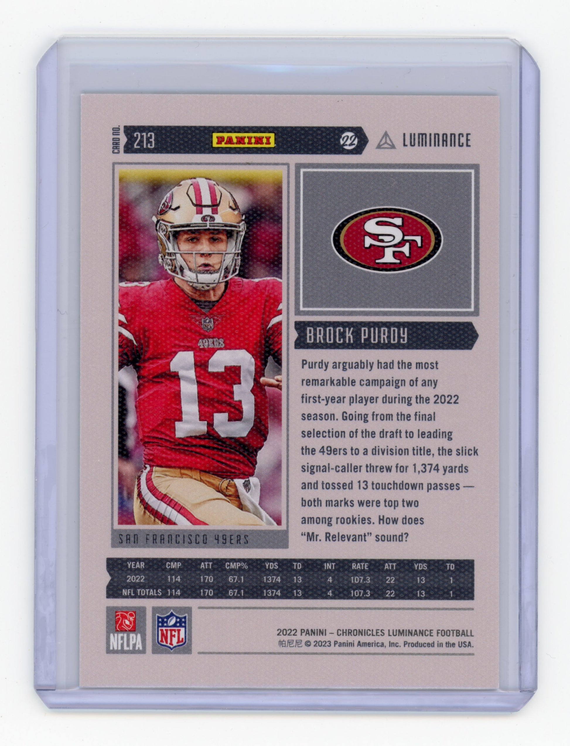 2023 Panini Chronicles Luminance Brock Purdy Purple /49 RC #213