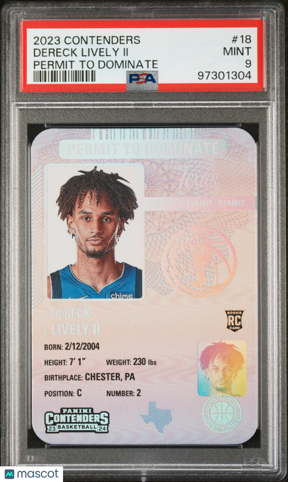 2023 Panini Contenders Dereck Lively II Permit To Dominate RC #18 PSA 9