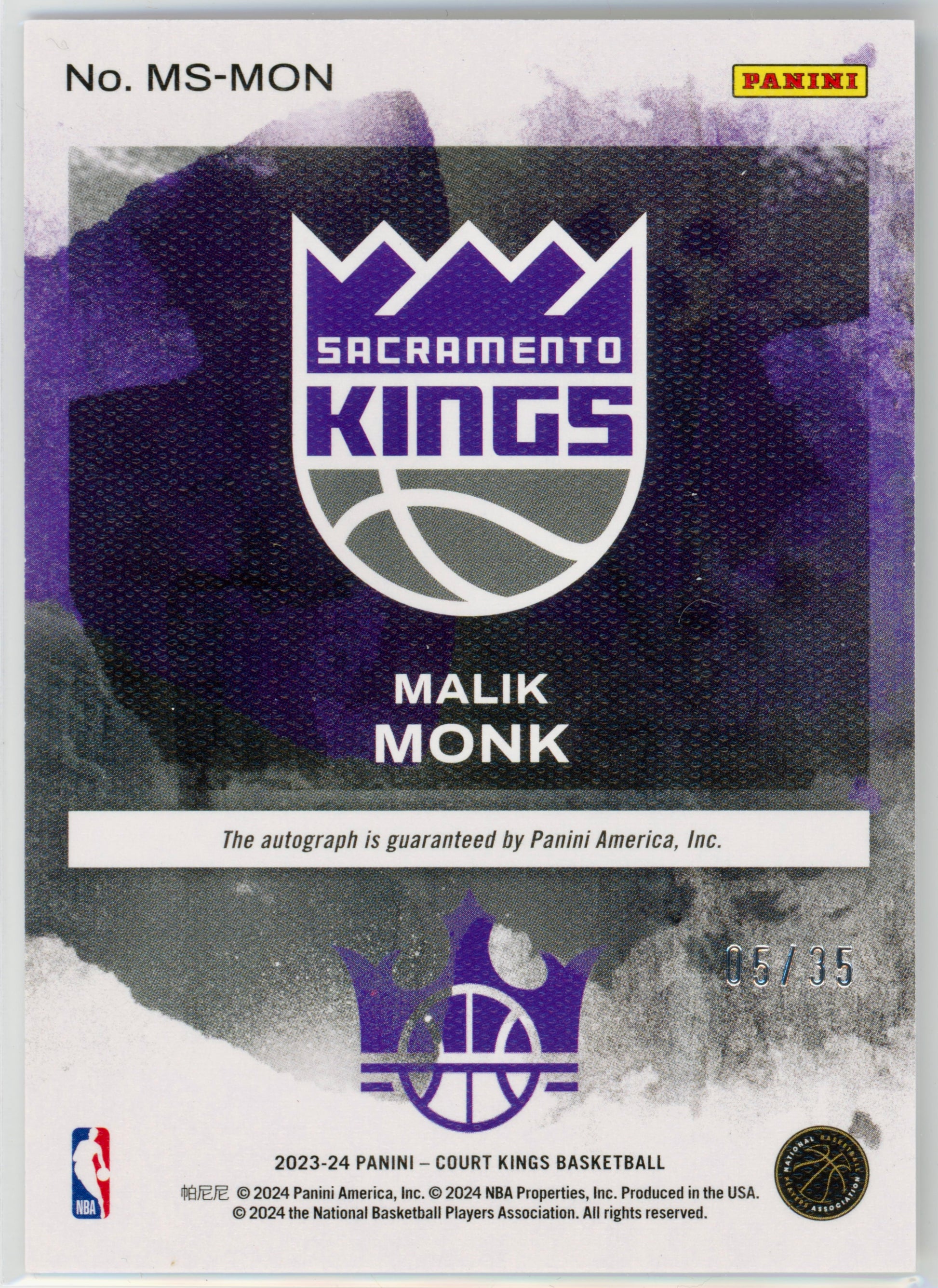 2023 Panini Court Kings Malik Monk Masterstrokes Signatures Violet /35 #MS-MON