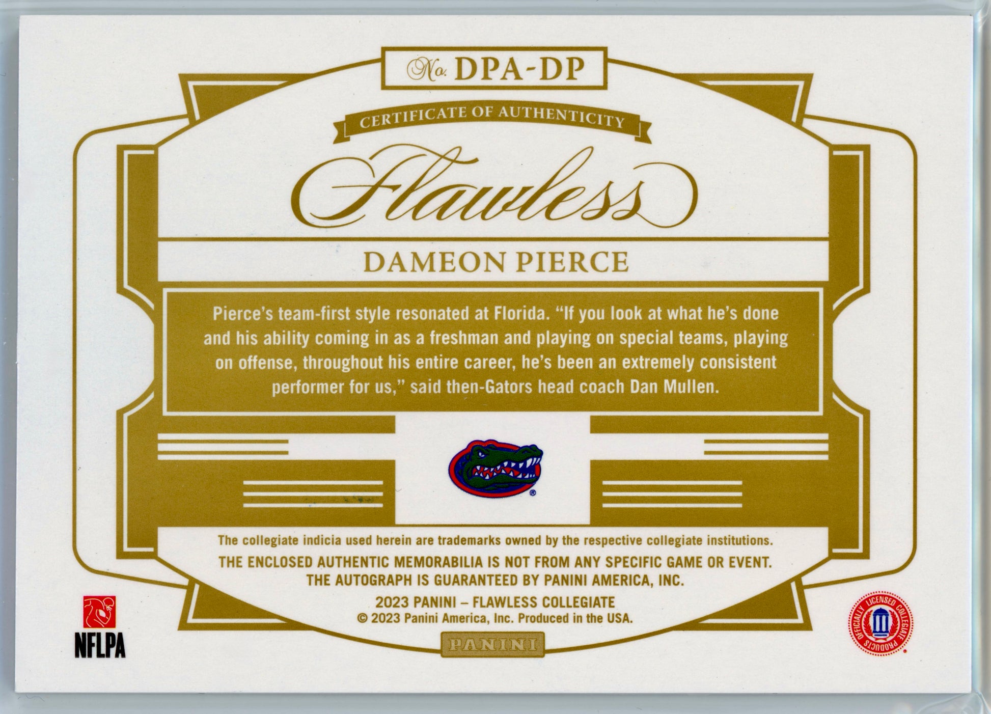 2023 Panini Flawless Collegiate Dameon Pierce Distinguished Patch Autos /25