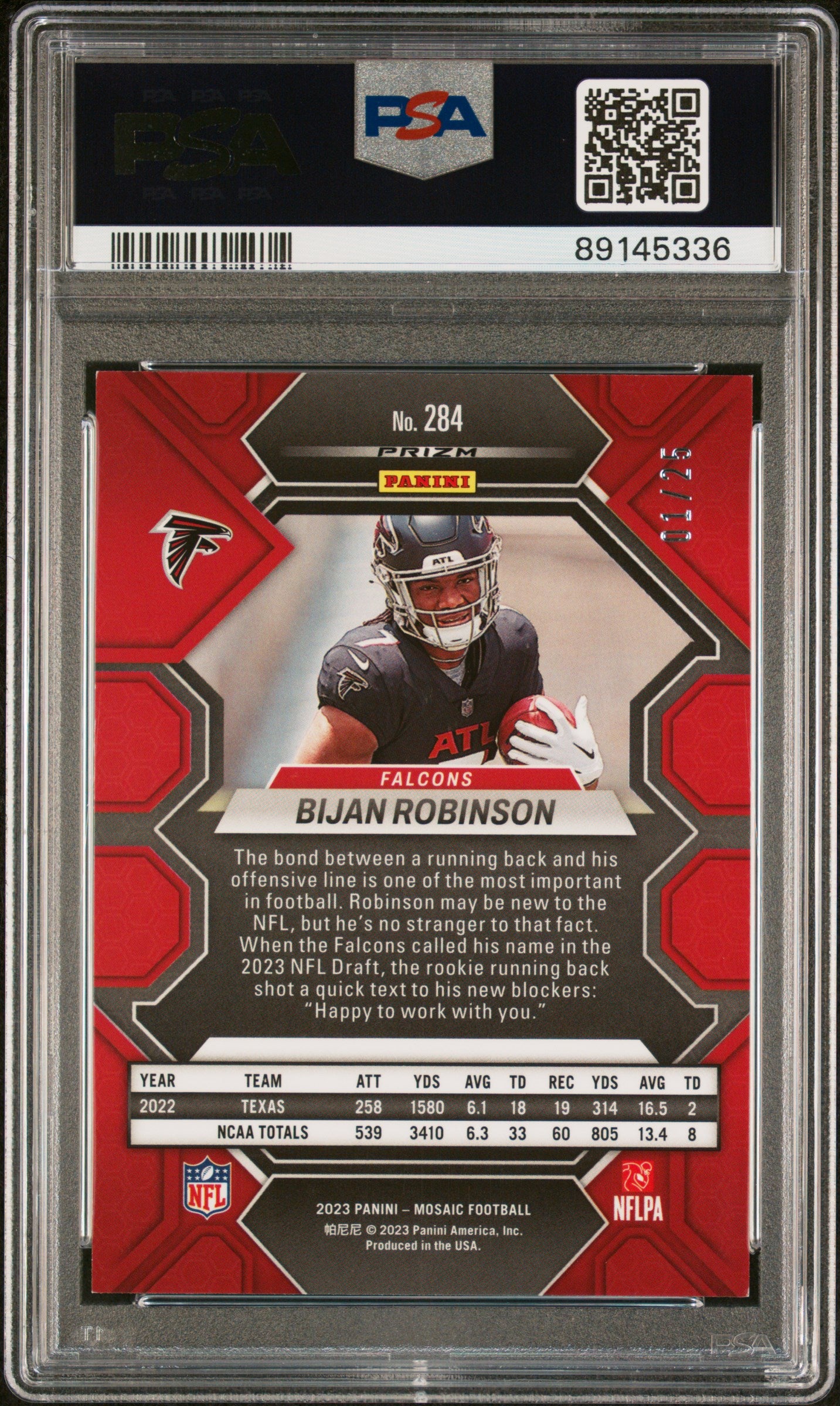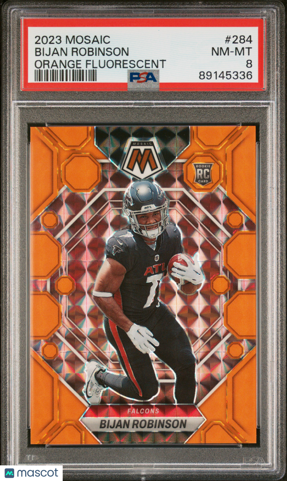 2023 Panini Mosaic Bijan Robinson Orange Fluorescent /25 RC #284 PSA 8