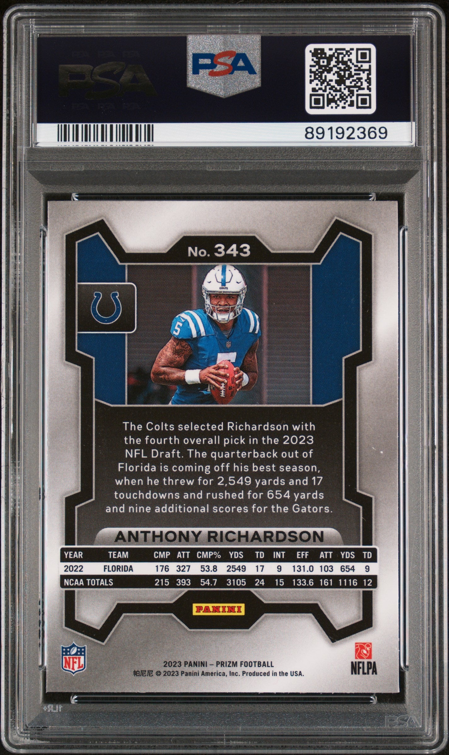 2023 Panini Prizm Anthony Richardson #343 PSA 10