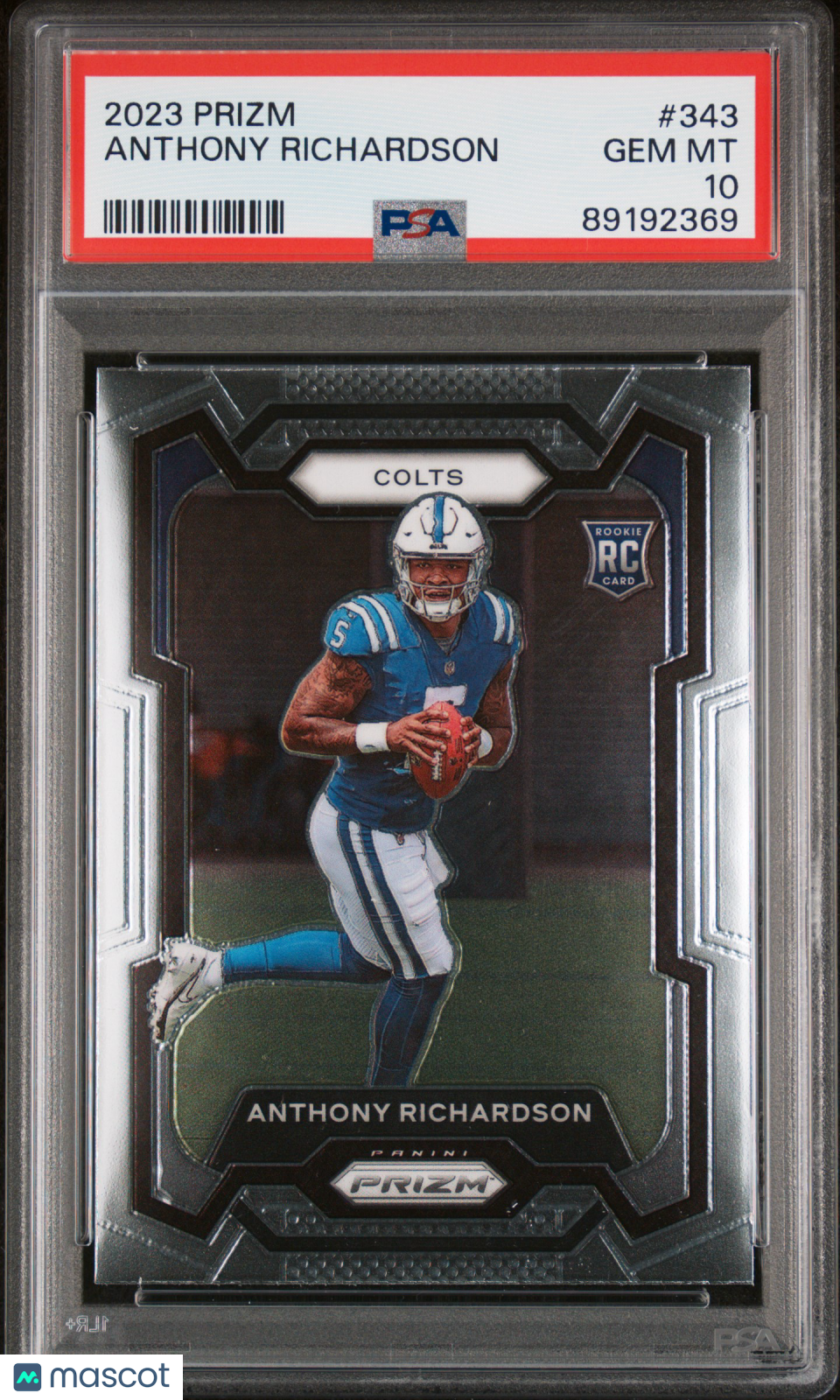 You are purchasing a 2023 Panini Prizm Anthony Richardson #343 PSA 10 from Rip N Rumble Cards LLC. You will receive the exact item in the photographs. Thank you for your business! All sales are final, we do not accept returns. Standard shipping rates are: $5.00 USPS Ground Advantage for ALL cards. If you purchase multiple items and prepay, any additional shipping costs will be refunded after the $5 is met. We cannot invoice International orders! Any International customer must purchase their cards in full WITH shipping costs, and the difference in shipping will be refunded. Any orders of 10+ raw cards or 5+ slabs may be shipped in multiple packages. We are not set up for huge orders! Handling time is 3 business days, but often much sooner. We do not ship on MOST weekends! Please note if our shop is in vacation mode! If this is the case, all orders will be shipped on or before the return date. Thank you for considering Rip N Rumble Cards, we do our best to have the greatest shipping and customer service possible to make every order easy and hassle free for our customers. We very much appreciate your business! Listed With Mascot.